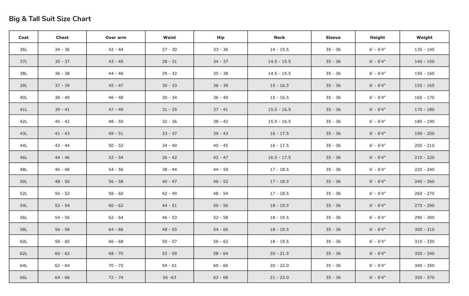 - 2-piece Big & Tall Men’s Fit Suit consists of a high quality jacket and pants set.